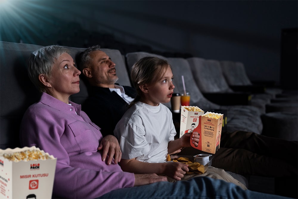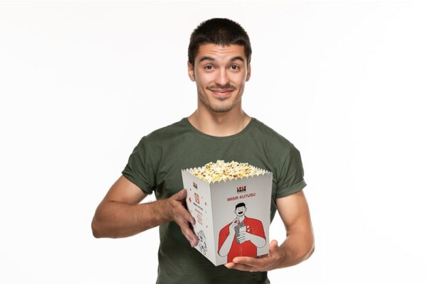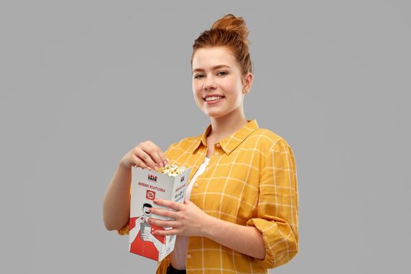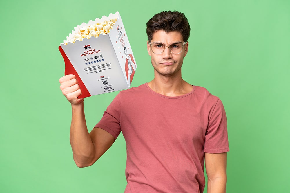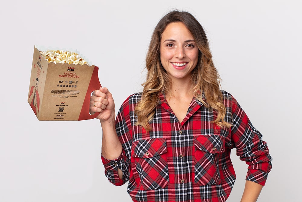 Sinemada, festivalde veya sokakta… Kulplu mısır kutusu, ergonomik tasarımı sayesinde tek elle kolayca taşınabilir, böylece diğer eliniz tamamen özgür kalır. %100 geri dönüştürülebilir malzemelerden üretilen bu ürün, yağ ve su geçirmez özel kaplaması sayesinde mısırınızı taze ve hijyenik tutar.